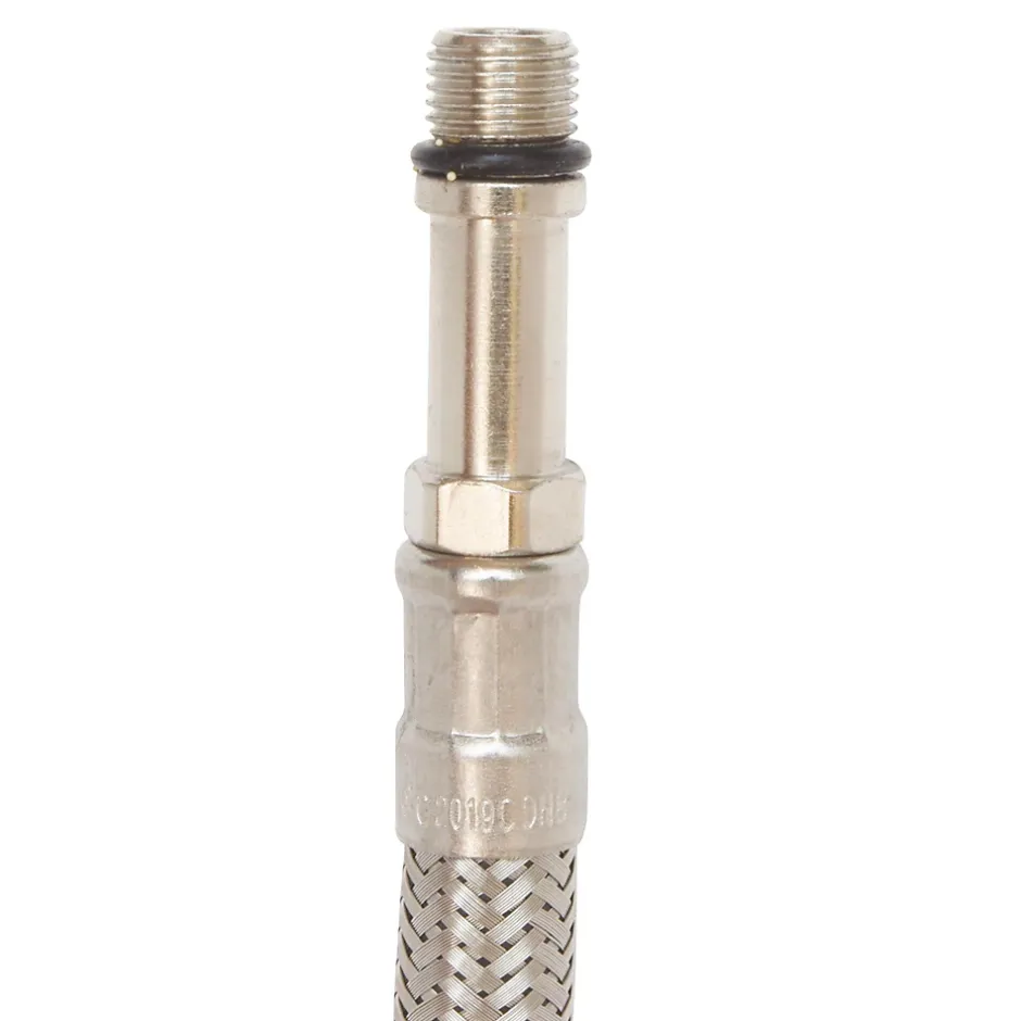 - Tuyau de raccordement sanitaire spécial robinetterie. Matière EPDM tressé acier inox. Raccords en laiton nickelé. Mâle prolongé 10/100 avec joint torique intégré Ecrou tournant 1/2″ Longueur : 300 mm DN 8. Pression max. : 10 bars Température max. : 90°C. Normé ACS Certifié QB.