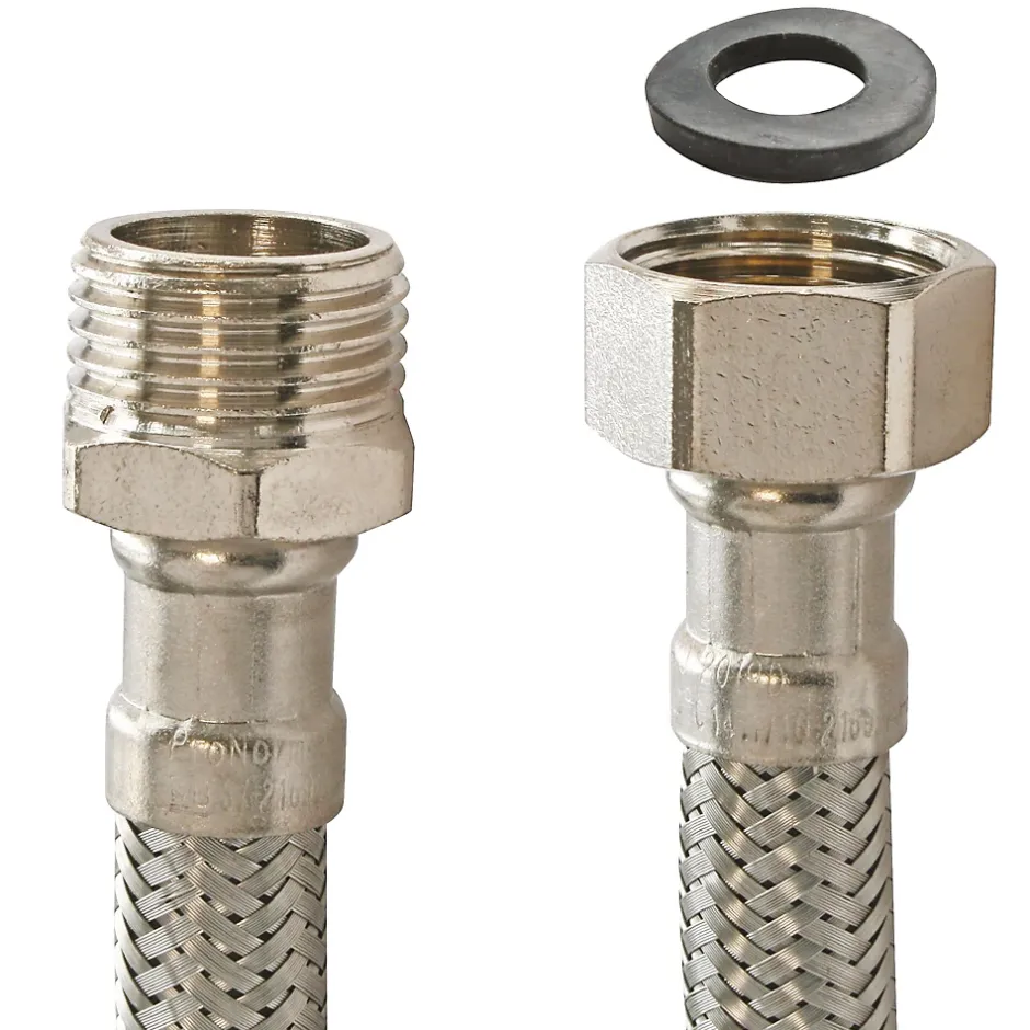 Flexible de raccordement sanitaire. – Raccords mâle 1/2″ écrou tournant 1/2″. – Les raccords en matière laiton nickelé appportent une meilleure durabilité dans le temps. – Tuyau en EPDM tressé en acier inoxydable assurant une parfaite résisance mécanique et une protection anti-corrosion. – Etanchéité assurée par joint plat intégré pour une facilité et une rapidité d’installation. – La souplesse du flexible permet d’accéder aux endroits les plus restreints. – Produit répondant aux exigences à la norme ACS et à la certification QB pour une garantie de fiabilité sur vos installations sanitaires.