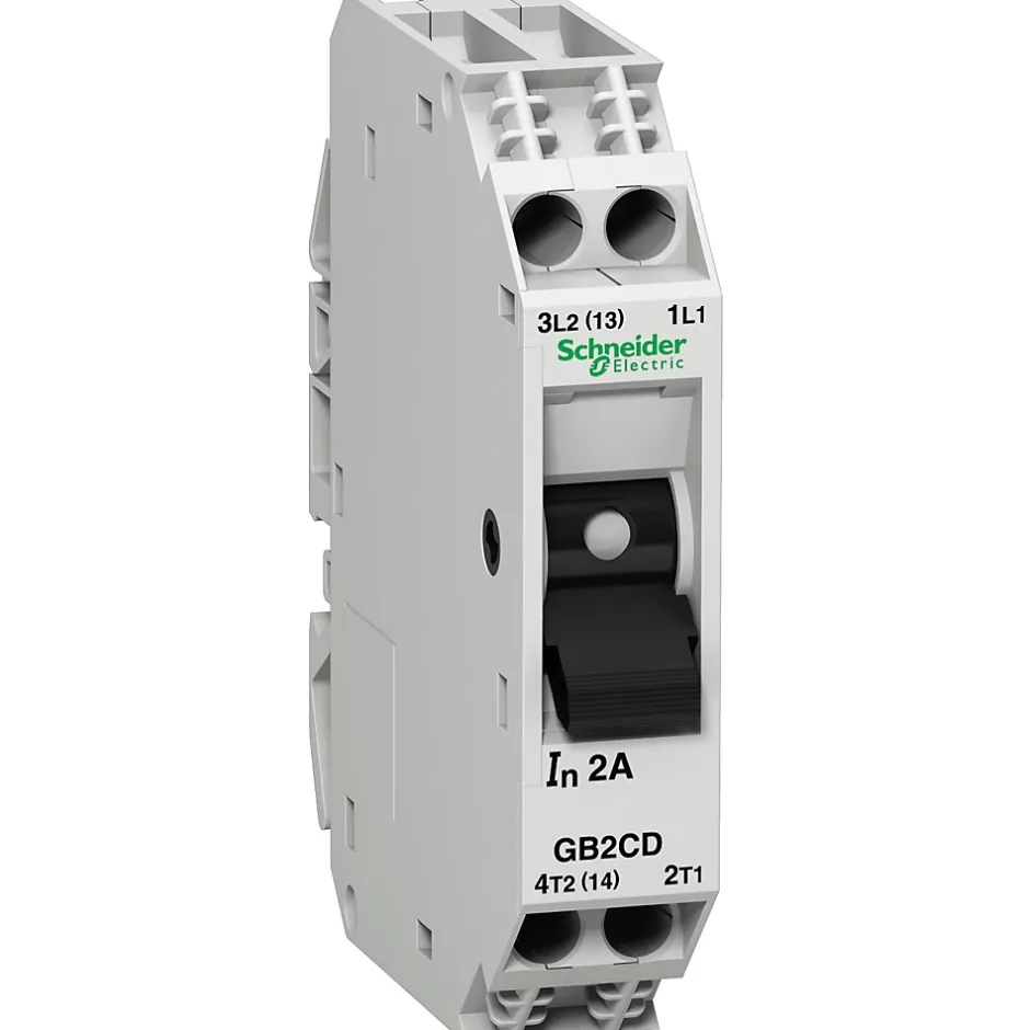Disjoncteur pour circuit de commande moteur 1P+N 5A – Schneider GB2CD10Les disjoncteurs de la gamme GB2-CD sont utilisés en industrie pour protéger et sectionner les circuits de contrôle de moteurs électriques industriels (bobine de contacteur, transformateur primaire/secondaire).Le disjoncteur Schneider Electrique GB2CD10 possède un seuil de déclenchement thermique entre 12 et 16 fois l’intensité nominale pour supporter les pics sur les installations industrielles.Les spécificités du disjoncteur GB2CD10Fabriqué en FrancePolarité1P+NCalibré à 5A
