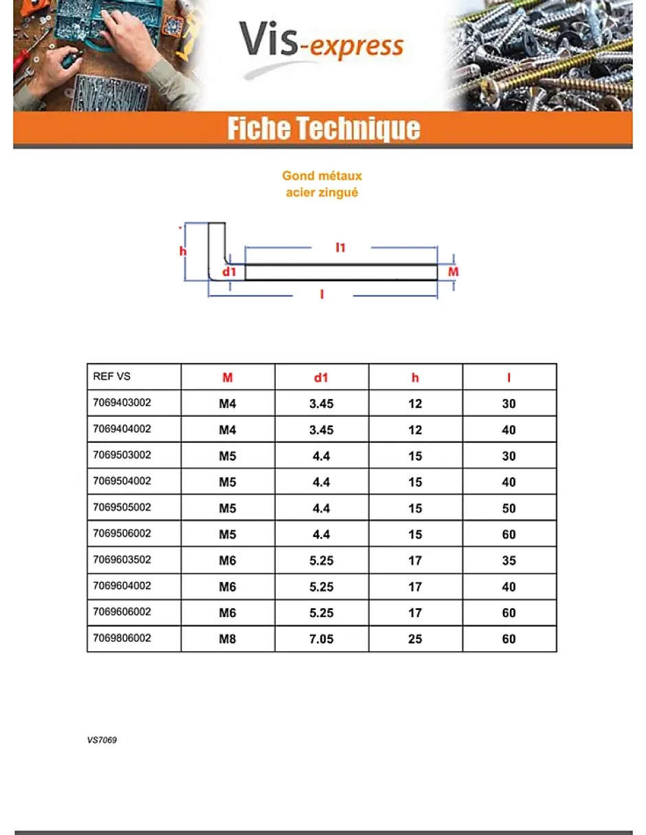 Gond Métaux M6X60 Acier zinguéDiametre = M6, Longueur = 60, Revetement De Surface = Zingue Blanc, Matiere = Acier, Famille De Produits = PitonnerieAutre références : 3617500647269 3663072479807