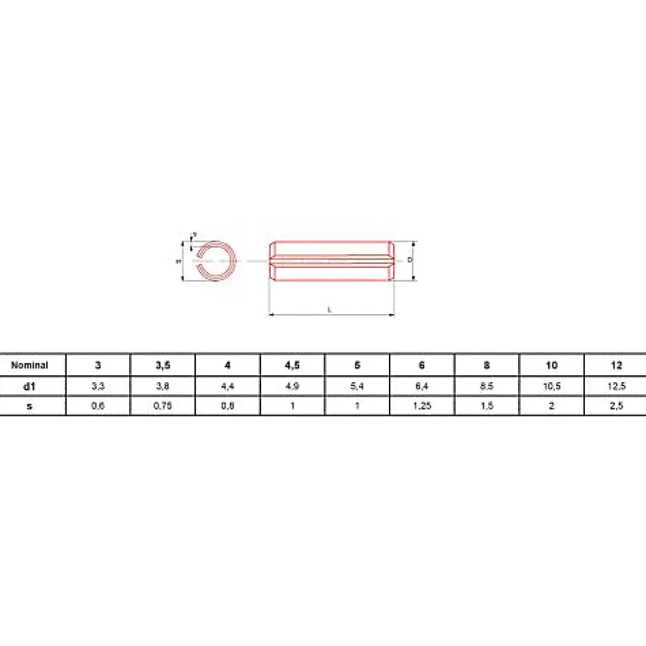 Caractéristiques techniques : Type : goupille élastique.Finition : brut.Normes :DIN 1481.ISO 8752.