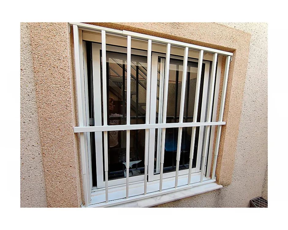 Grille de fenêtre adaptable à toutes dimensions (largeur et hauteur), fabriquée en acier avec finition peinture électrostatique au four. Ajustement extraordinaire. Montage facile par vissage. Sécurité maximale immédiate