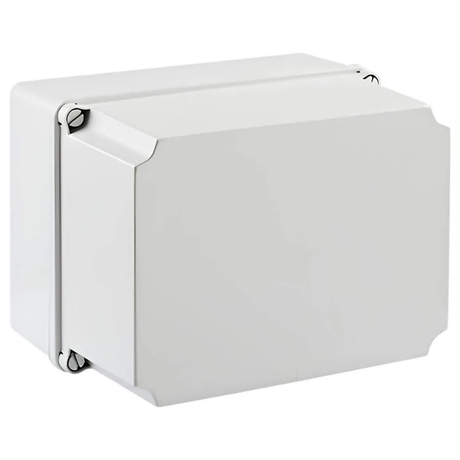 Boite Étanche – 241x180x175mm – IP67Cette boite étanche à couvercle réhaussé opaque est fabriquée par IDE.Cette boite dispose d’une étanchéité IP67 ainsi qu’une résistance aux impacts externes IK07.Résistante aux UV, cette boite peut être installée en extérieur.Les entrées de câbles de la gamme light se situent sur les faces latérales de la boite. Ce boitier ne dispose pas d’entrées prédécoupées, pensez à prévoir des presse-étoupes.Il est possible d’intégrer une plaque de montage et/ou rail DIN dans ce boitier étanche, permettant l’installation d’appareillage (disjoncteurs, relais, bloc de jonction…)Dimensions (HxLxP) : 241x180x175mmRéférence Plaque de montage compatible compatible : 92125; 92124Référence rail DIN compatible : 92721; 92722Matière : plastique sans halogèneTenue au fil incandescent : 650°CTempérature d’utilisation : -25°C à +40°C