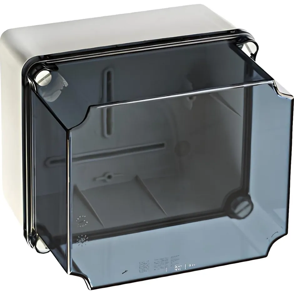 Boite Étanche – 175x151x155mm – IP67Cette boite étanche à couvercle réhaussé transparent est fabriquée par IDE.Le capot vitrée est fabriqué en polycarbonate sans halogène.Cette boite dispose d’une étanchéité IP67 ainsi qu’une résistance aux impacts externes IK07.Résistante aux UV, cette boite peut être installée en extérieur.Les entrées de câbles de la gamme light se situent sur les faces latérales de la boite. Ce boitier ne dispose pas d’entrées prédécoupées, pensez à prévoir des presse-étoupes.Il est possible d’intégrer une plaque de montage et/ou rail DIN dans ce boitier étanche, permettant l’installation d’appareillage (disjoncteurs, relais, bloc de jonction…)Dimensions (HxLxP) : 175x151x155mmRéférence Plaque de montage compatible compatible : 92123; 92122Référence rail DIN compatible : 92713Matière : plastique sans halogèneTenue au fil incandescent : 650°CTempérature d’utilisation : -25°C à +40°C