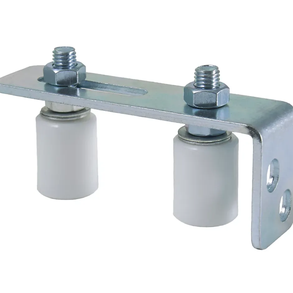 Guide à rouleaux en nylon moulé dans un support pratiqueRéglable en largeurFilets zinguésDouble écrous pour le blocage en place