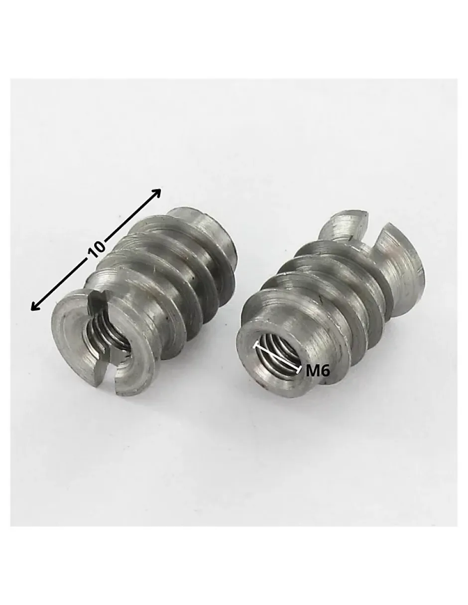 Insert fileté bois fendu Acier brut M6 12X10Diametre = M6, Matiere = Acier, Pas = Pas standard de 100, Empreinte = Fendu, Famille De Produits = EcrouAutre références : 3617501933118 2QINS12X10M6 3663072116276