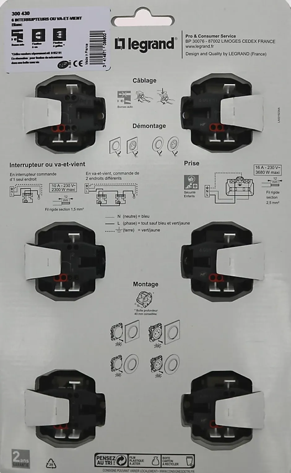 | Style | Dooxie – Lot 6 interrupteurs, Dooxie – Lot 6 Prises 2 Pôles + terre |