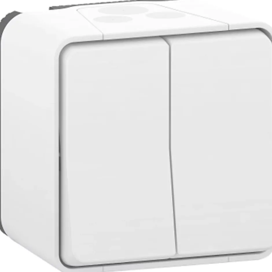 Double va et vient blanc encastré étanche Mureva Mureva Styl est une gamme d’appareillage robuste et résistante à l’eau, conçue pour les environnements extérieurs. Les produits couvrent l’ensemble des besoins. L’installation est simple et rapide. Son design intuitif et innovant se fonde sur une ergonomie avancée, un minimum de pièces – qui s’assemblent simplement, et un important espacede câblage. Cette gamme d’appareillage est idéale pour les garages, les sous-sols, les parkings et les environnements électriquement sensibles tels que les blanchisseries, les cuisines et les salles de bains, ainsi que les locaux à risques mécaniques tels que les ateliers et les salles de sport.