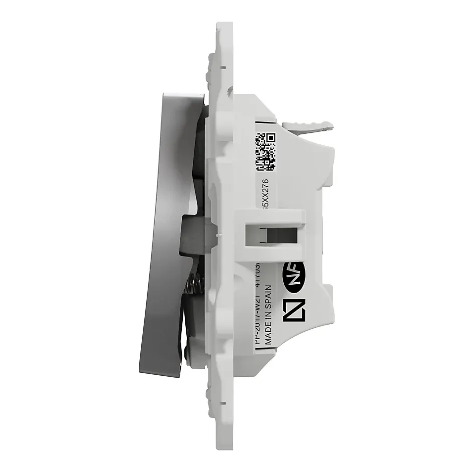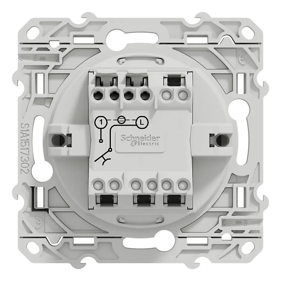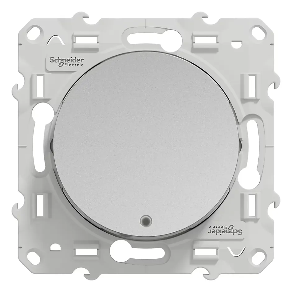 Interrupteur poussoir lumineux LED bleu 10A à vis Schneider Electric Odace aluminium