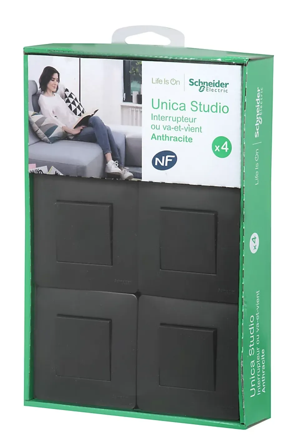 Interrupteur va-et-vient complet Schneider Electric Unica Déco anthracite, lot de 4