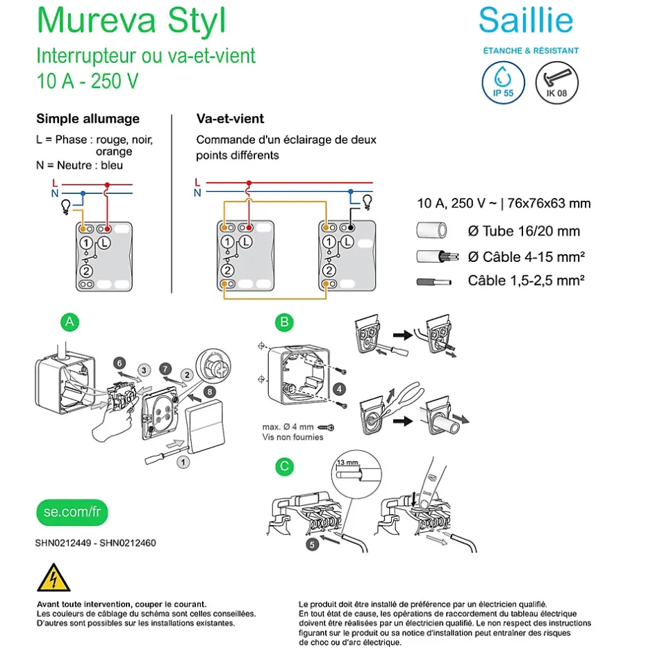 Interrupteur va-et-vient étanche complet saillie Schneider Electric Mureva Styl blanc
