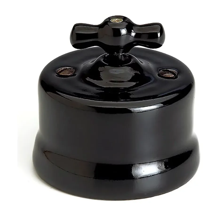 Interrupteur va-et-vient Fontini Garby Porcelaine noire, manette noire en saillie