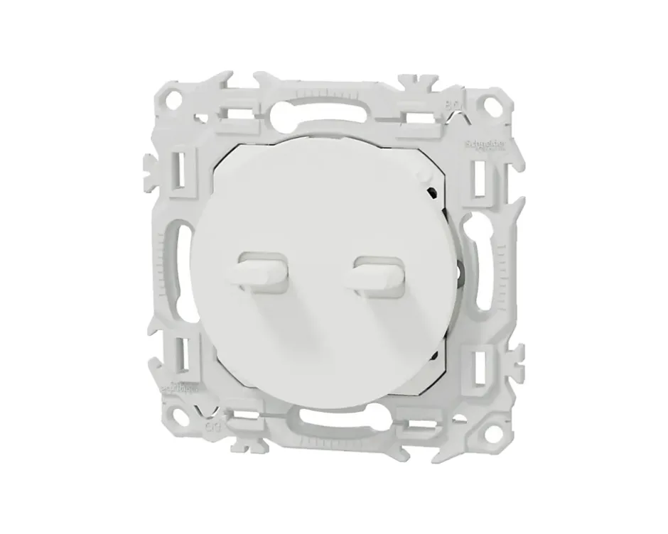 Double va-et-vient ou poussoir à levier Odace blanc craie – Schneider Electric S920213Mécanisme double 10A convertible va-et-vient ou poussoir, avec leviers distincts pour piloter deux circuits d’éclairage. Bornes automatiques, design affleurant blanc craie et compatibilité avec toutes les plaques Odace 2025.