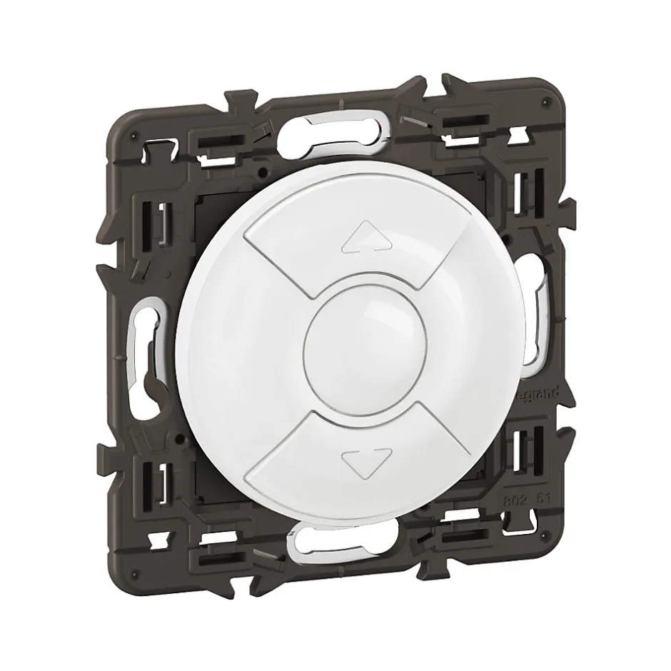 Interrupteur de volets roulants Céliane pour commande directe de moteur – livré avec enjoliveur Blanc et support montés, à équiper d’une plaque de finition