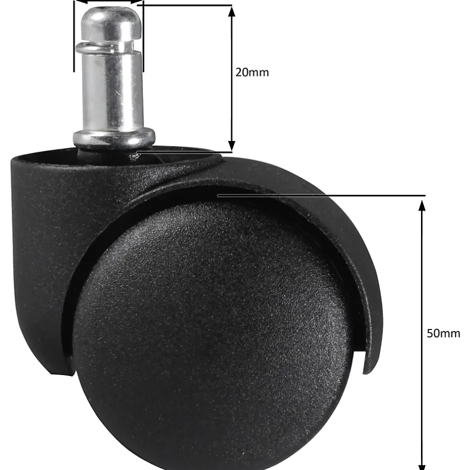 conceptionRouleaux de tapis pour chaises de bureau (ensemble de 5)Plastique de haute qualitécouleurnoirparticularitésDiamètre PIN 11mmLongueur de la broche: 20 mmDiamètre du rouleau 50 mmSGS testéConvient aux chaises de bureau avec une broche de 11mm (diamètre de la broche métallique)Convient pourtapisFeutre basmatière100% polyuréthanelivraison5 rouleauxSans décoration
