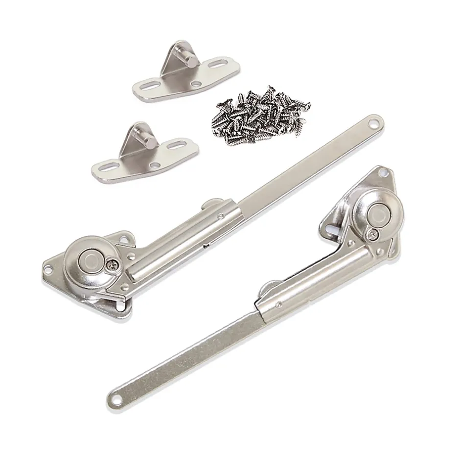 Jeu de compas pour portes de meubles à abattant. Conçu pour amortir l’ouverture brusque des portes des meubles pour la cuisine, la maison et la salle de bain. Durée supérieure à 50.000 cycles d’ouverture/fermeture testée. La vitesse de la descente est réglée avec une vis. Contient fixation pour porte en bois et vis pour le montage. Fabriqué en acier et zamak avec finition nickelé. VOIR LES MESURES DU PRODUIT DANS LES IMAGES. Jeu de compas pour meubles à portes à abattant avec durabilité testée supérieure à 50.000 cycles d’ouverture/fermeture. Conçu pour amortir l’ouverture brusque des portes des meubles pour la cuisine, la maison et la salle de bain. La vitesse de la descente est réglée avec une vis.Contient une fixation pour porte en bois et les vis pour le montage. Fabriqués en acier et zamak avec finition nickelé.