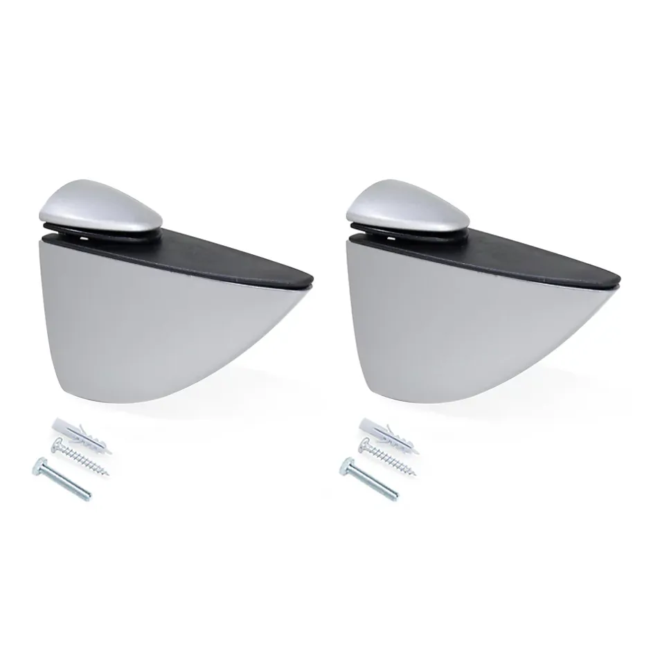 Supports muraux pour le maintien d’étagères en bois ou en verre dans toutes les pièces de votre maison.Elles ont un design élégant qui transforme la ferrure en élément décoratif. Les supports sont fixés au mur de la pièce pour créer des étagères, à l’aide des bouchons et vis inclus.Les supports sont dotés d’un couvercle inférieur mobile qui s’adapte à l’étagère par-dessus le couvercle supérieur, éliminant ainsi le besoin de trous spéciaux ou d’usinage dans l’étagère. Il est nécessaire d’installer deux Supports par étagère, et ils sont compatibles avec des épaisseurs allant de 5 à 40 mm.Conforme à la norme UNE EN-14749:2006 (meubles conteneurs à usage domestique et de cuisine).Fabriquée en plastique et en zamak avec une finition gris métallisé. VOIR LES MESURES DU PRODUIT DANS LES IMAGES. Supports pour étagères avec un design élégant et décoratif pour toutes les pièces de votre maison. Parfaits pour la fixation d’étagères en bois ou en verre et pour créer des étagères murales.La partie inférieure est mobile afin de resserrer l’étagère contre la partie supérieure. Ainsi le montage ne requiert ni pré-perçage ni usinage.UNE EN 14749:2016 vc 2017 , 75 kg