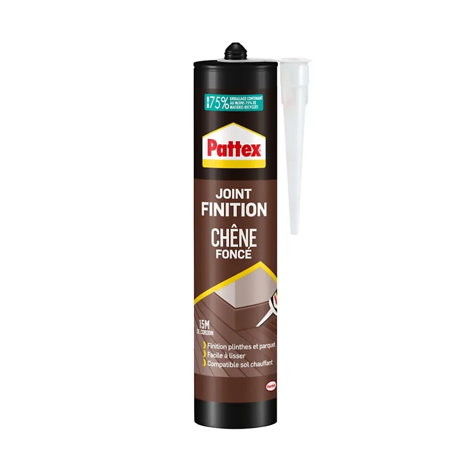 Pattex Mastic Joint de Finition parquets & boiseries est un mastic acrylique idéal pour calfeutrer des fissures sur bois, pour réaliser des joints de raccordement entre maçonnerie et huisserie, des joints de liaison pour les plinthes, moulures, poutres ou encore pour la réalisation de joints de dilatation pour les boiseries soumises à de fortes vibrations, telles que les portes, les fenêtres, les escaliers, etc. Ce mastic à base de résines acryliques peut être posé sur tout support en bois ou de maçonnerie : bois, béton, plâtre, brique, fibre-ciment, etc. Peut être peint ou verni après séchage.