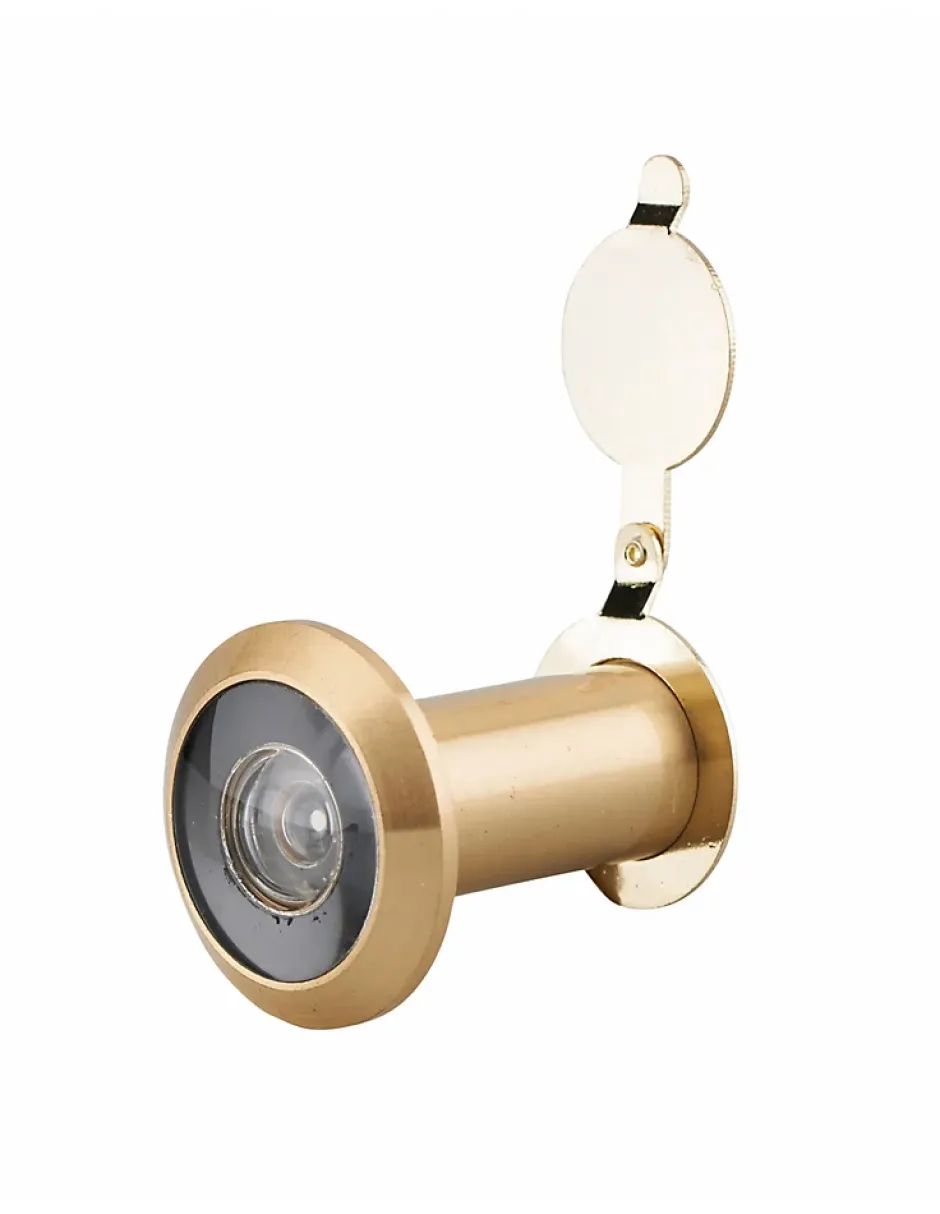 Monture laiton massif avec volet obturateur. Système optique à 3 lentilles. Champ de vision 160°- 200°.