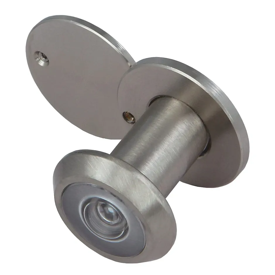 Judas optique, super angulaire, en laiton. Dans des emballages individuels. Couvercle arrière solide. Lentille optique de haute qualité. Angle de vision superangulaire de 160 degrés. Construction en laiton massif. Couverture arrière spéciale qui offre le plus haut niveau de protection et de sécurité.