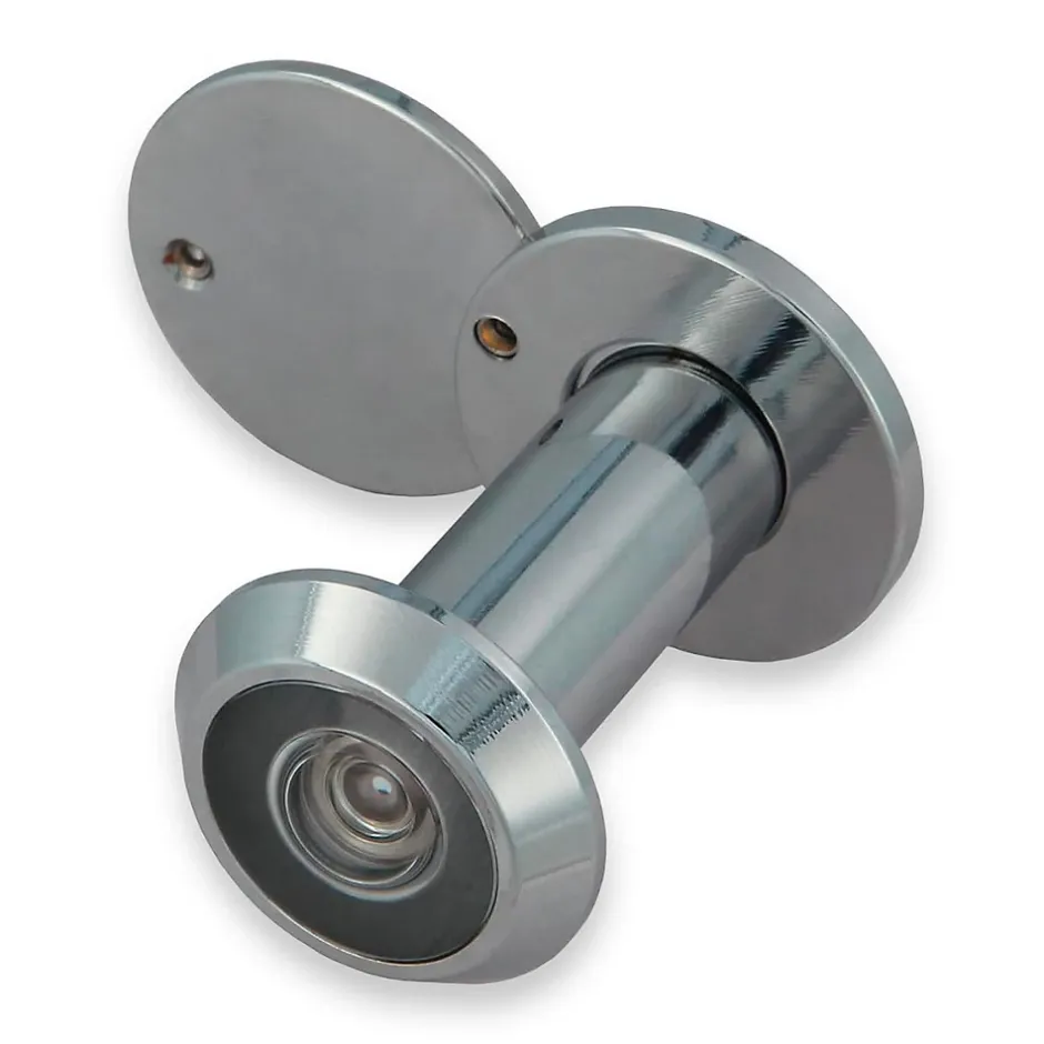 Judas optique, super angulaire. Dans des emballages individuels. Couvercle arrière solide. Lentille optique de haute qualité. Angle de vision superangulaire de 160 degrés. Construction en laiton massif. Couverture arrière spéciale qui offre le plus haut niveau de protection et de sécurité.