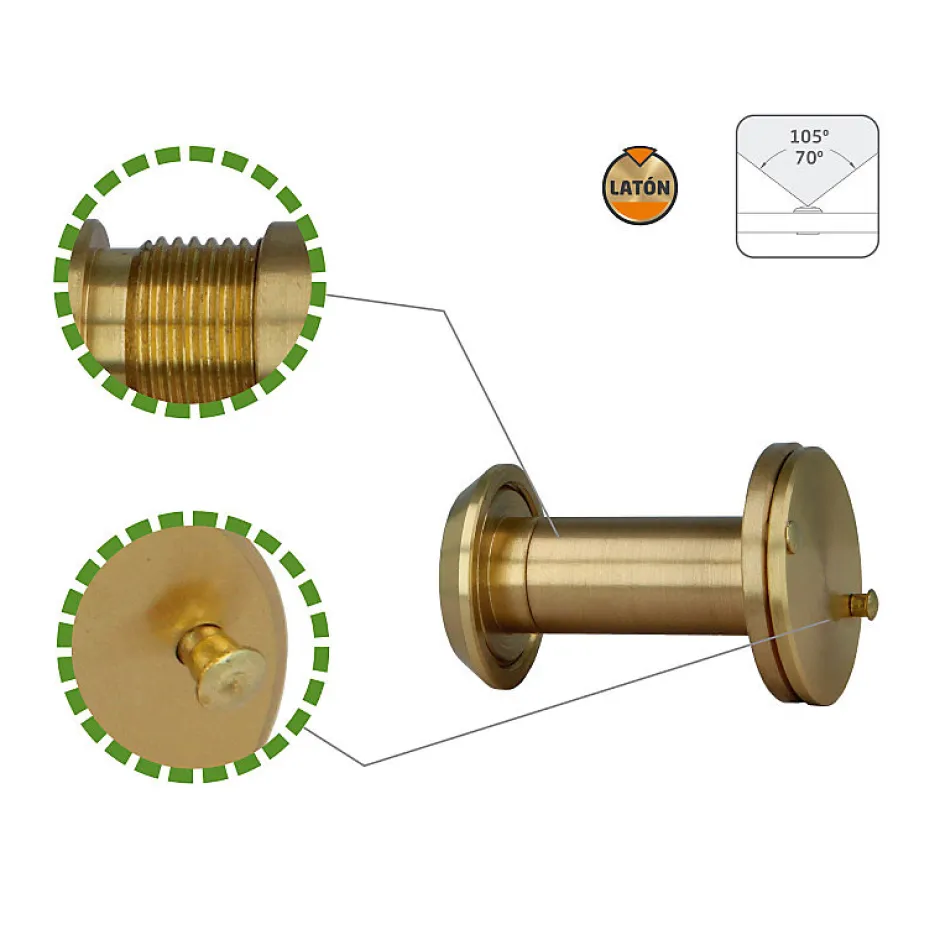 Judas optique, super angulaire. Dans des emballages individuels. Couvercle arrière solide. Lentille optique de haute qualité. Angle de vision superangulaire de 160 degrés. Construction en laiton massif. Couverture arrière spéciale qui offre le plus haut niveau de protection et de sécurité.