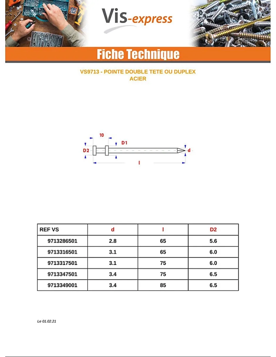 Kg de pointes Double Tête Acier brut 3.1X65Diametre = 3.1, Longueur = 65, Matiere = AcierAutre références : 3617501524804 3663072491038
