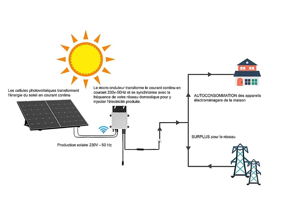 - Kit 2 panneaux solaires Plug & Play – 850 W – panneau solaire et micro onduleur – rendement 21,8% – Plug and play – Plug n play – énergie solaire – autoconsommation – LONGi – LUMINOSER