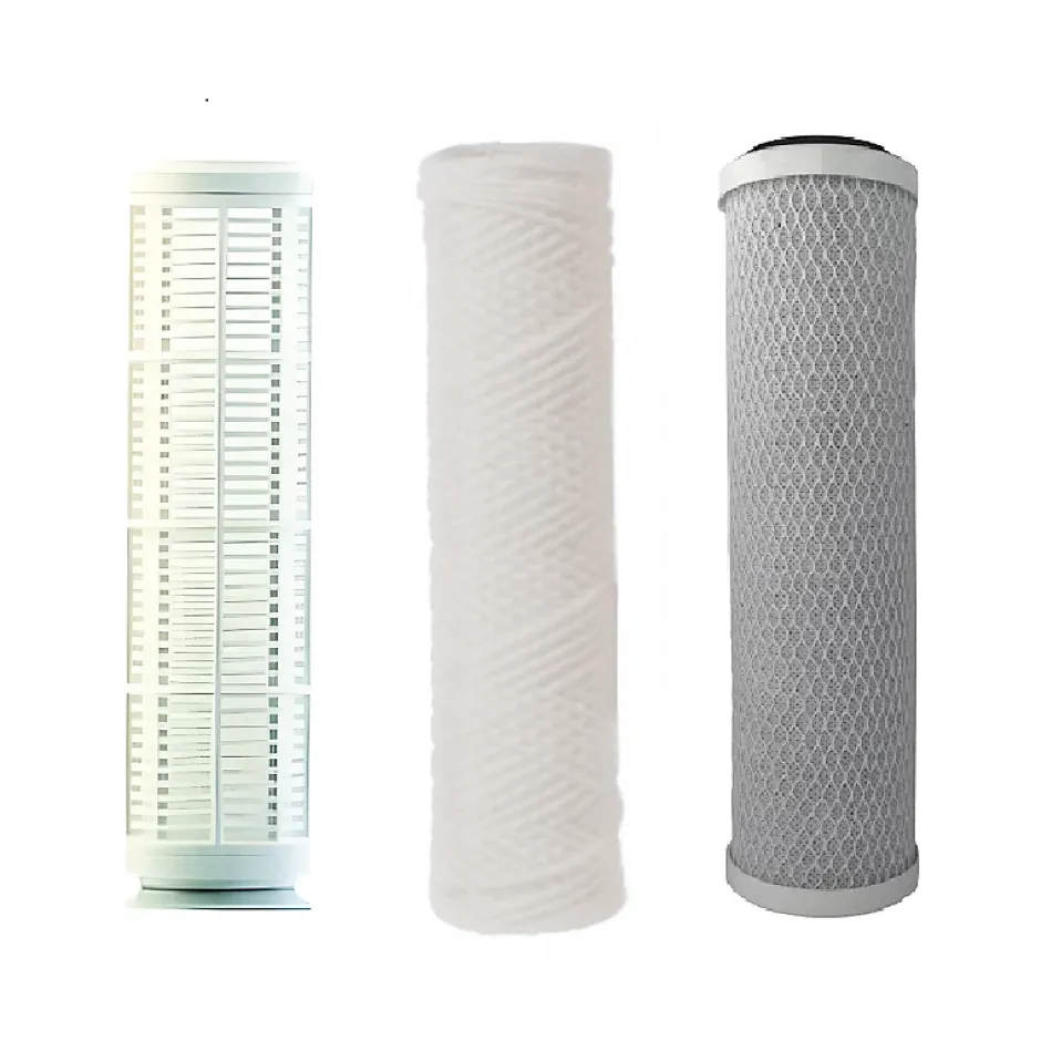 Pack contenant 3 cartouches de filtration pour filtre eau de pluie 9″3/4- Cartouche lavable 60µ – Cartouche anti-boue et sédiments 20µ- Cartouche de charbon actifAttention bien mettre les cartouches dans cet ordre, de la plus grosse filtration jusqu’à la plus fine.