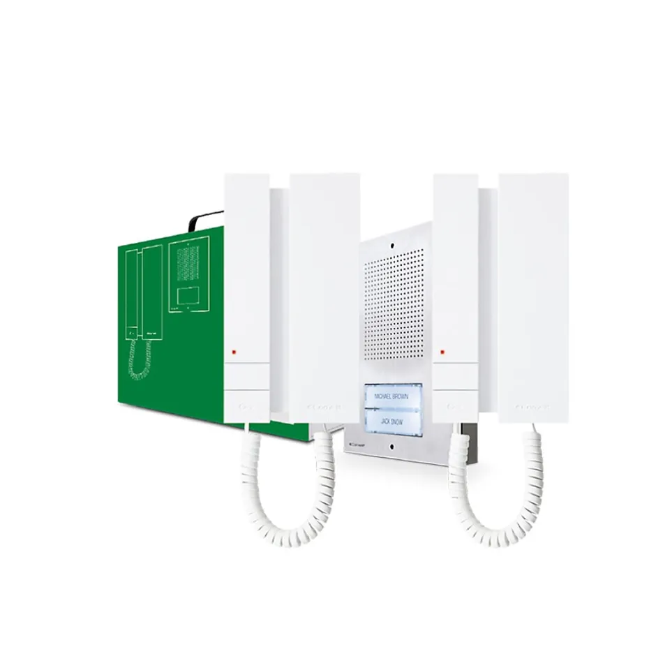 Kit audio 5 fils deux appels extra-mini – KAE5062 – ComelitLe Kit audio 5 fils deux appels extra-mini (KAE5062) de COMELIT comprend deux postes audio série Mini et une platine extérieure avec deux boutons d’appel série Extra. Le système utilise un câblage à 5 fils, facilitant l’installation par rapport aux systèmes plus complexes. Les postes audio série Mini ont un design compact et élégant, s’intégrant facilement dans divers environnements. Ils permettent une communication bidirectionnelle claire entre les visiteurs et les résidents, avec des boutons d’appel intégrés. La platine extérieure est équipée de deux boutons d’appel distincts, offrant aux visiteurs la possibilité de choisir leur destination. Elle dispose d’un microphone et d’un haut-parleur intégrés, avec des options de montage encastré ou en saillie.Caractéristiques principales :Système d’interphone simple, à communication bidirectionnelleComposé de 2 postes audio série Mini et 1 platine extérieure avec deux boutons d’appel série ExtraUtilise un système de câblage à 5 filsPlatine équipée d’un boîtier à encastrer et d’un support pour montage en saillieFacilité de configuration