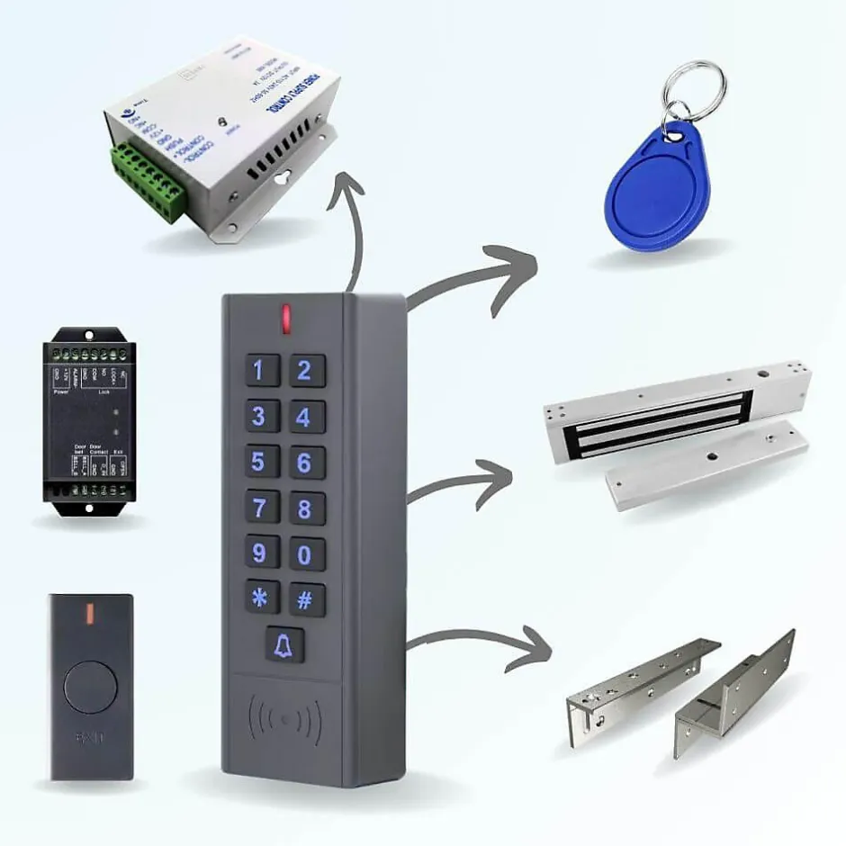 Simplifiez la gestion de votre accès simplement et finissez-en avec les clés !Contrôlez facilement votre accès grâce à des codes ou des badges grâce au clavier étanche IP65 et sa télécommande sans fil. Simple d’installation, les connexions électriques s’effectuent sur le module relais. Le clavier et le bouton poussoir fonctionnent sans fil, sur pile !Ce kit complet de contrôle d’accès autonome convient à de multiples applications et particulièrement pour :• une entreprise;• une salle de sport;• un stand de tir;• une salle de cours;• une association.Les plus• Clavier étanche pour utilisation en extérieur sans protection ou en intérieur.• Programmation possible par « code » ou « badge » ou « code et badge », jusqu’à 600 utilisateurs !• Permet de piloter une gâche électrique, une ventouse magnétique, un automatisme (portail, porte de garage…).• Installation facile grâce au clavier et au bouton poussoir sans fils.• Totalement autonome, sans logiciel ni réseau, la programmation s’effectue directement sur le clavier par code maître.Fonctionnalités• Possibilité de brancher un bouton de sortie, une alarme externe, un contact de porte et une sonnette (par contact sec)• Peut être utilisé comme digicode uniquement ou lecteur RFID uniquement ou digicode et lecteur de badges• Touches rétroéclairées• Branchements électriques sur le modul…