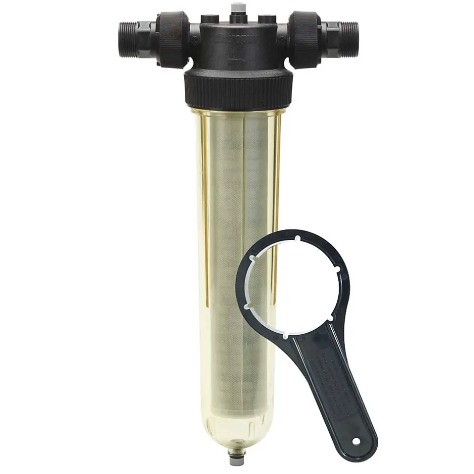 Kit complet filtre anti impuretés Cintropur NW32 – avec équerre de fixation et tamis réutilisable 80 µmLe kit complet filtre NW32 Cintropur est conçu pour le prétraitement de l’eau claire (eau de réseau, eau de pluie, forage…). Il élimine les particules solides : sable, rouille, boues, etc. Ce modèle intègre une hélice centrifuge qui permet d’utiliser la totalité de la surface de filtration du tamis et précipiter les sédiments dans le fond de la cuve.Applications du kit filtre cintropur :Filtration d’eau potable : Le filtre est utilisé pour purifier l’eau potable en éliminant les particules telles que le sable, la boue, la rouille, les algues et autres impuretés présentes dans l’eau de distributionPré-filtration : Il sert de pré-filtre pour d’autres systèmes de traitement de l’eau comme les adoucisseurs, les filtres à charbon actif, les osmoseurs…Filtration agricole : Sert de filtre pour les eaux d’arrosage ou d’abreuvage pour les animauxNotre kit filtre à sédiments comprend les éléments suivants :Filtre anti sédiments 80 micronsEquerre / Fixation murale Tamis lavable cintropur 80 micronsCaractéristiques du kit filtre a eau domestique cintropur :Type de produit : Filtre simpleMatériaux : Polyéthylène / SAN / ABS / PolyesterCouleur : NoirTempérature max : 50°CPression de fonctionnement : 10 barsPression maximale : 16 barsSeuil de filtration : 80 µmLavable : OuiRaccordement entrée / sortie : 1″1/4 – 33/42Installation : idéalement à l’entrée de l’installationDébit nominal : 6,5 m3/hSurface de filtration : 840 cm²Manchon de filtration : LavableHauteur : 581 mmLongueur : 269 mmProfondeur : 130 mmGarantie : 2 ans