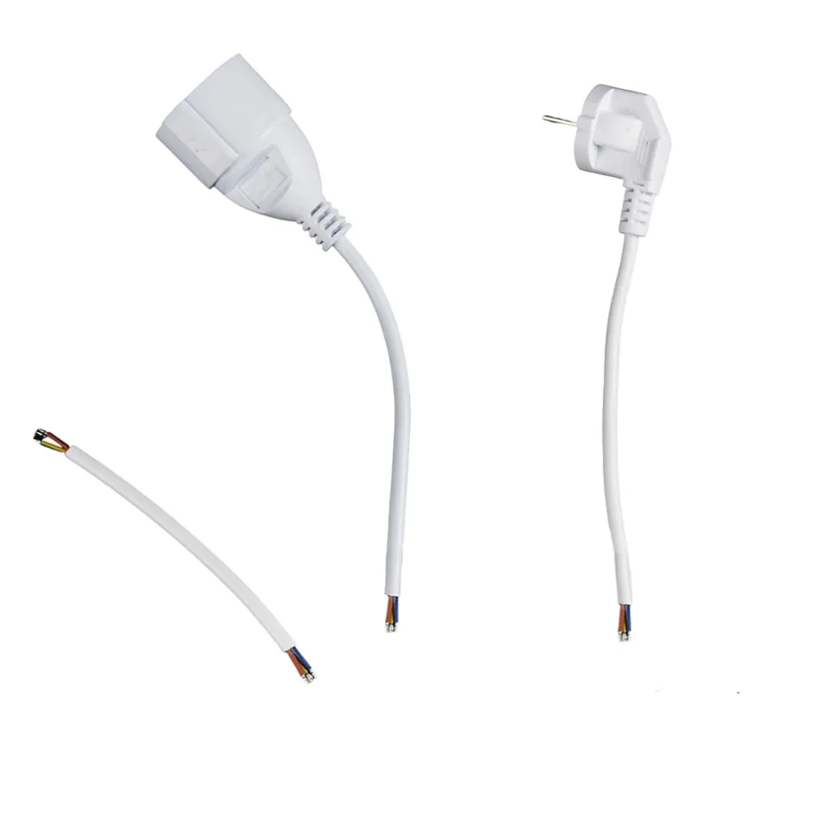 Ce kit contient trois éléments principaux : Une prise mâle : celle avec les deux broches que l’on branche dans une prise murale classique. Une prise femelle : celle où l’on peut brancher un appareil électrique, comme une lampe ou un radiateur. Un morceau de câble rond supplémentaire : il est là pour être utilisé en cas de besoin, si vous avez besoin d’un peu plus de longueur. Ces éléments sont conçus pour fonctionner avec notre « domino », qui est un petit connecteur spécial relié à notre câble ultra-plat. Pourquoi utiliser ce kit ? Au lieu de remplacer directement votre prise murale par notre domino (ce qui peut demander plus de manipulation), ce kit vous permet de créer une rallonge. Cette rallonge est très simple à installer et ne demande aucune compétence particulière. Comment ça marche ? Branchez la fiche mâle dans une prise murale classique. Cela alimente le système. Connectez l’autre extrémité au domino. Ce domino est connecté au câble ultra-plat. Le câble ultra-plat relie ce premier domino à un second domino. Connectez ce second domino à la fiche femelle. La fiche femelle est, à son tour, reliée à votre appareil électrique (comme une lampe, une TV ou un autre appareil). Résultat : Vous avez créé une rallonge ultra-plate ! Cette rallonge est discrète, facile à installer et surtout, elle peut être mise en place par n’importe qui, même si vous n’êtes pas un expert en bricolage. Cela rend l’installation plus simple, rapide et accessible à tous.