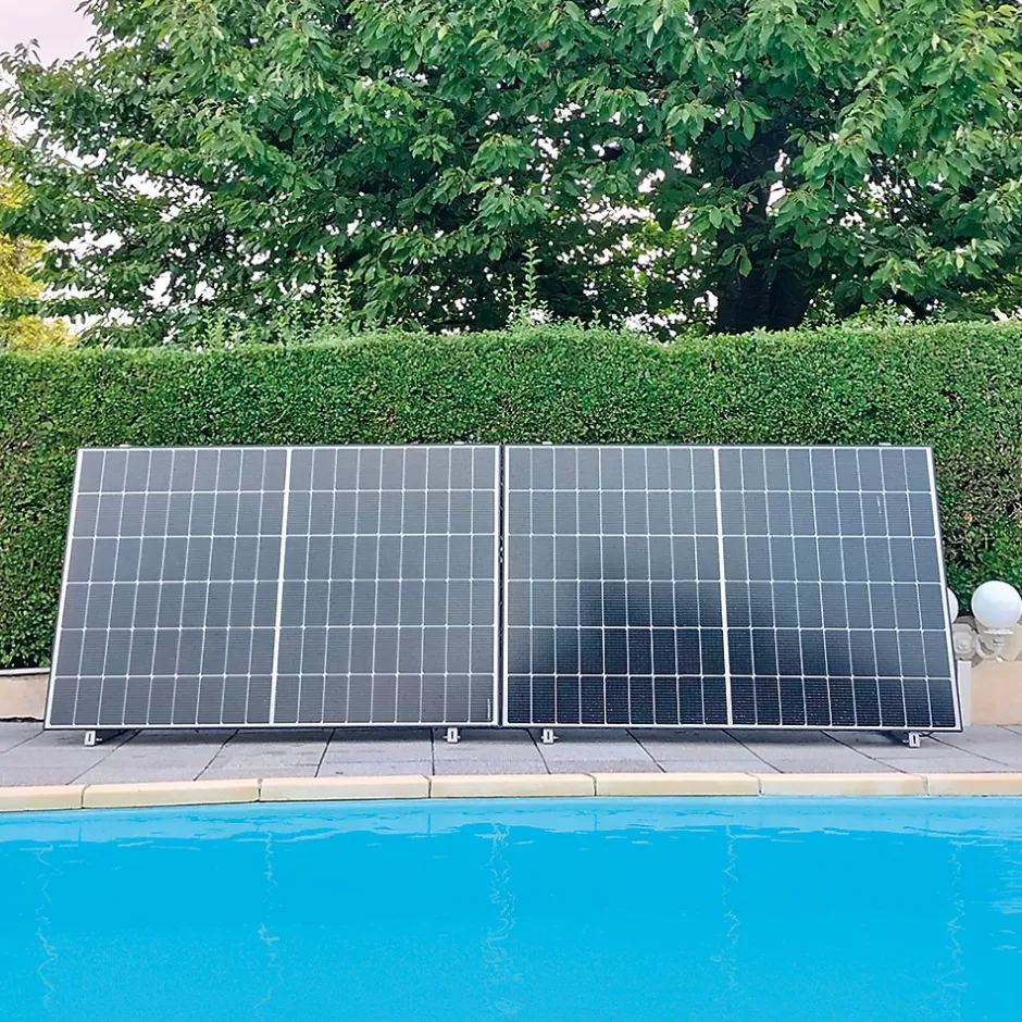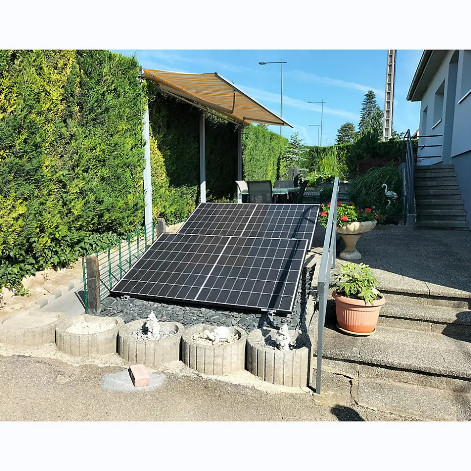 Kit Plug & Play 900W « Gamme TOP » incluant :* 2 panneaux photovoltaïques monocrisallin 450W N-Type TOPCon Bifacial (GA-M108ZOSH-450)* 1 micro-onduleur Benyi 800 VA (MOGA-BMY800)* 2 structures métallique 3 en 1 (balcon, façade ou sol) avec inclinaison réglable (STGA-1PV)* 1 Câble 3G1,5mm2 de 10m (ACGA-C10M1,5)* 2 Câbles de connexion inter-PV 2m avec connecteurs MC4 (ACGA-CIPV2M)* 1 Guide administratifLe kit GALIX KGA-900B_M permet de couvrir en + de votre talon de consommation, l’énergie consommée par votre multimédia : PC, box internet, HiFi, écran et quelques appareils électroménargers comme le micro-ondes, la cafetière… C’est le kit idéal si vous êtes présent à la maison en journée.* Installation facile, juste à brancher sur une prise de courantDécouvrez la vidéo de mise en service du Kit Plug & Play GALIX : https://www.youtube.com/watch?v=i69Hs8RMc88* Une conception simple et modulaire* Amorti en 4 à 6 ans, passé ce délai, votre électricité produite par votre kit GALIX sera 100% GRATUITE* Production garantie 25 ans !3 types de fixation : * au sol avec lestage* sur une façade* sur un balcon avec garde-corpsPackaging : Colis A : 1 x panneau 450W + Structure + Micro onduleur + AccessoiresColis B : 1 x panneau 450W + StructureDimensions colis: 1808 x 1240 x 93mmTotal poids net A + B : 74,878 kgLivraison sur palette : 1850 x 1300mm