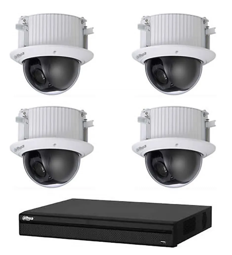 Découvrez le kit complet de vidéosurveillance Dahua et sa qualité professionnelle.Ce kit est composé d?un enregistreur DVR 16 chaînes et 4 caméras dôme analogiques anti vandalisme pour la surveillance de vos locaux.Le kit se compose de :- 1 enregistreur DVR HCVR8216. A-S3 et ses accessoires : souris, câble d?alimentation et Ethernet, borniers de connexion.- 4 caméras dôme analogiques HDCVI PTZ SD52. C225. I-HC-S2 livrées avec un guide d?installation et un CD compact d’installation.Caractéristiques de l?enregistreur DVR HCVR8216. A-S3 Dahua :- Application Windows / MAC et Mobile (i. OS / Android) permettant : configuration, accès à distances, fonctionnalités, ?- Dimensions : 375 x 310 x 55 mm- Ports : 3 ports USB, 16. CH, 2 ports RJ45- Résolution : jusqu?à 1080p en temps réel- Disque dur : jusqu’à 2 disques durs SATA (non fournis) – Branchements : 2 HDMI / 1 VGA- Entrées et sorties audio (nombre de canaux) : 4 entrées / 1 sortie- Alimentation : 12 V CC/5 A- Consommation électrique maximum : moins de 40 W (sans disque dur)Caractéristiques des 4 caméras dôme analogiques HDCVI PTZ SD52. C225. I-HC-S2 de Dahua : – Installation : intérieure, fixation au plafondd, à encastrer- Images par seconde : 30 ips à 1080p et 30 / 60ips à 720pSa résolution professionnelle HDCVI vous permet d’obtenir des images d’une grande clarté.- Capteur : CMOS 1/2,8 » Sony Exmor R de 2 mégapixels- Longueur de la focale : de 4,8 à 120 mm- Dimensions : diamètre 178,0 x 118,5 mm- Alimentation : 24. V CA- Consommation : 13 W- Certification IK10 : anti vandalisme- Températures d?utilisation entre -40 degrés et 60 degrés Ce qu?on aime : – Les produits Dahua permettent une configuration, et un accès aux fonctionnalités via logiciel ordinateur et application mobile (Android et i. OS).- L?enregistreur HCVR8216. A-S3 et les caméras SD52. C225. I-HC-S2 vous garantissent une qualité professionnelle pour une durée de vie optimale.- Simple de navigation et de programmation, l?enregistreur DVR Dahua vous permett