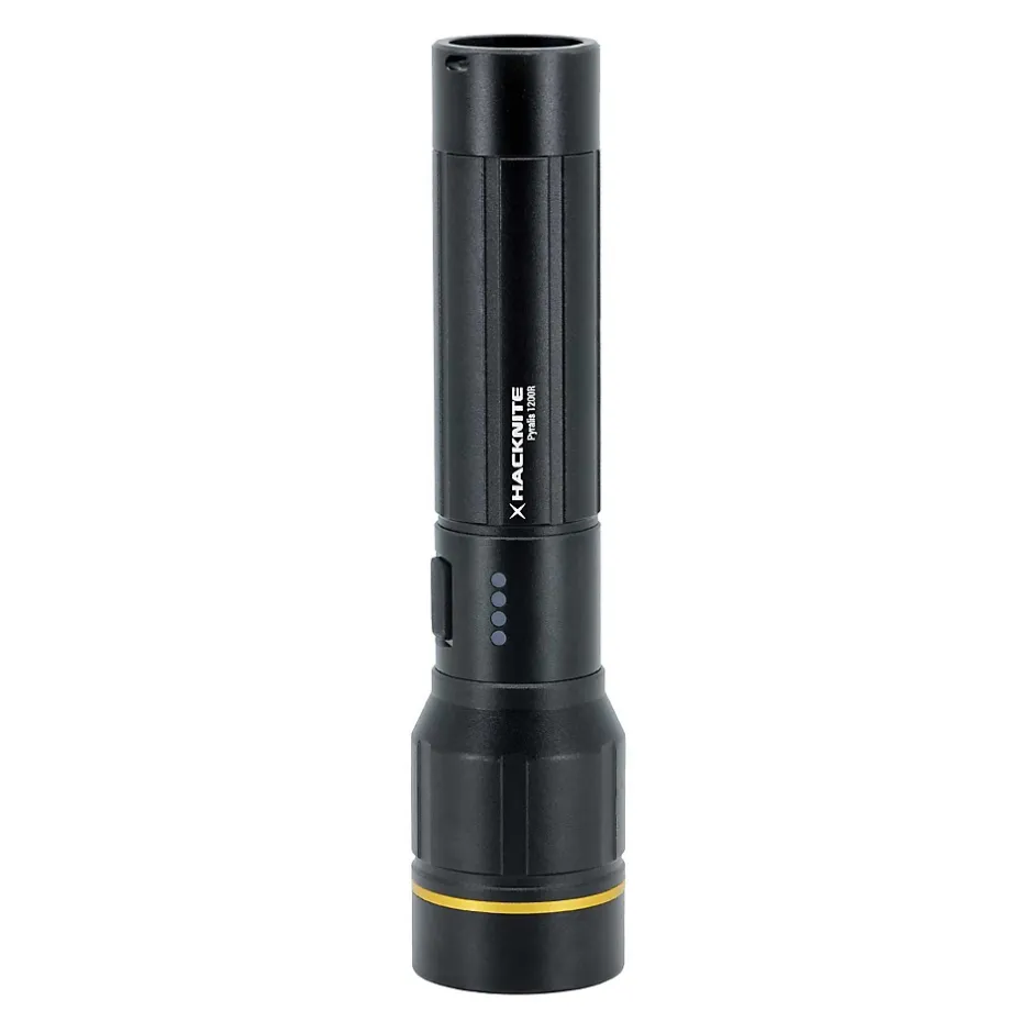 La PYRALIS 1200R se distingue par son corps en aluminium robuste et léger, garantissant durabilité et facilité de transport. Elle est équipée d’un indicateur de niveau des piles et d’un avertisseur de batterie faible (à 20 % et 10 %), vous permettant d’anticiper les recharges nécessaires. La lampe est livrée avec un étui de protection en nylon et une dragonne pour éviter les chutes accidentelles. Avec un poids de 201 g (sans batterie) et des dimensions de 38 x 170 mm, la PYRALIS 1200R est parfaite pour une utilisation polyvalente.CARACTÉRISTIQUES Puissance Lumineuse : 1200 lumensModes d’Éclairage : 3 modes ajustables pour différentes situationsFonction Zoom Axial : Ajustez le faisceau lumineux pour une diffusion large ou concentréeIndicateur de Niveau des Piles : Vérifiez facilement l’état de la batterieAvertisseur de Batterie Faible : Alertes à 20 % et 10 % de chargeÉtui de Protection : En nylon pour une protection robusteDragonne : Pour éviter les chutes accidentellesMatériau : Corps en aluminium léger et durableDimensions : 38 x 170 mmPoids : 201 g (sans batterie)Batterie Incluse : 4800 mAhUN ÉCLAIRAGE PUISSANT3 modes d’éclairage : choisissez entre différents niveaux de luminosité pour adapter l’éclairage à chaque situation, qu’il s’agisse d’une exploration nocturne ou d’une inspection minutieuse.Fonction zoom axial : ajustez le faisceau lumineux selon vos besoins, passant d’une large diffusion à un faisceau concentré pour des observations à distance. UNE BATTERIE HAUTE CAPACITÉ POUR UNE AUTONOMIE PROLONGÉEIndicateur de niveau de piles : restez informé de l’état de votre batterie, vous permettant de planifier les recharges