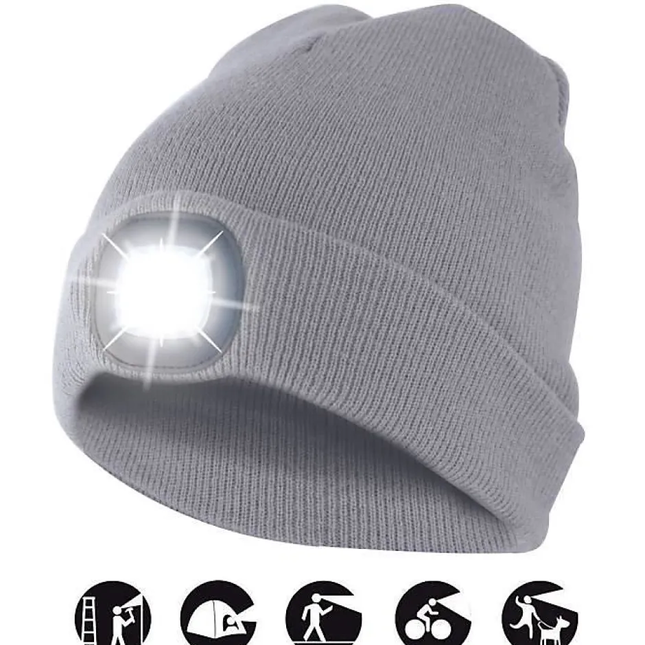 Bonnet à LED rechargeable par USB, éclaire jusqu’à 20 mètres avec 100 lumens. Lavable, léger et parfait pour le sport et les activités extérieures. 3 niveaux de luminosité et batterie Li-ion 250 mAh. Idéal pour la course, le camping et plus.