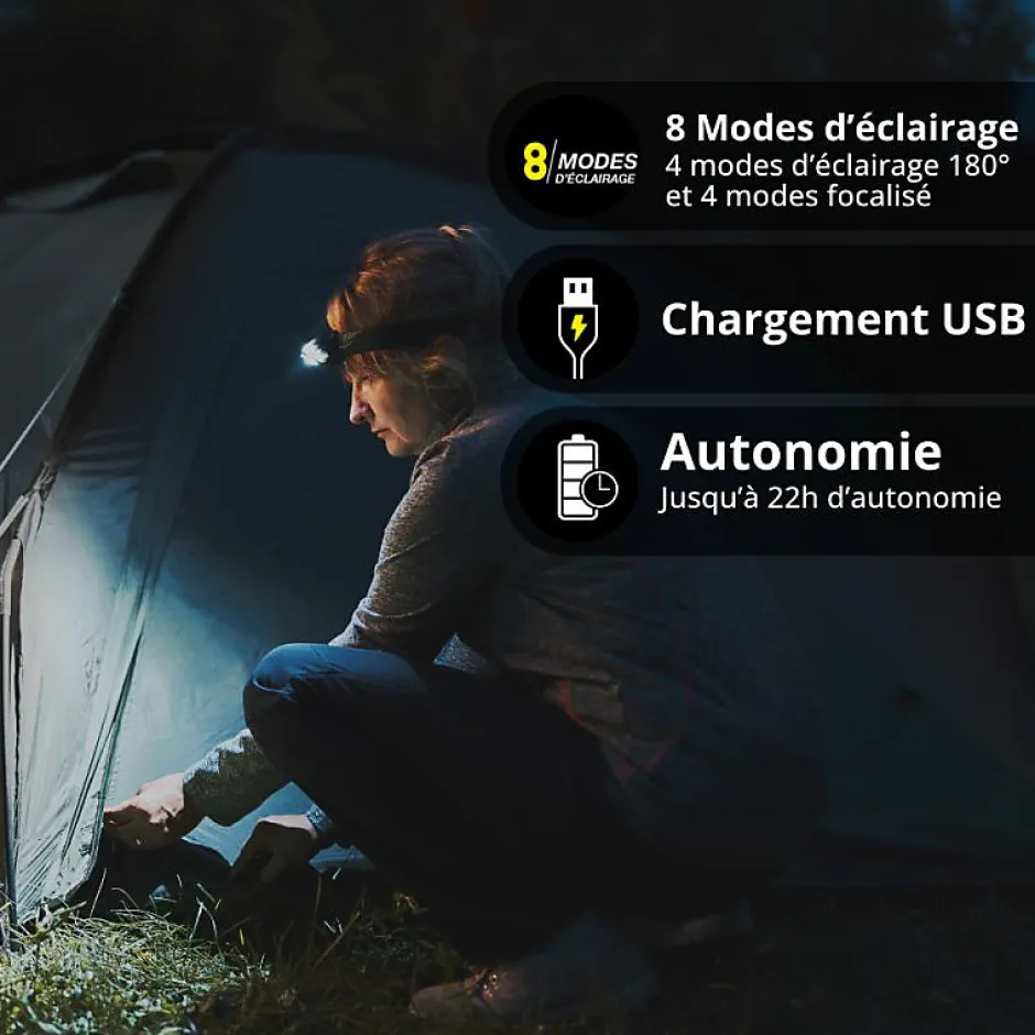 Xanlite – Lampe frontale LED rechargeable, USB 300 lumens, sensor intégré – FR450SSTRIP