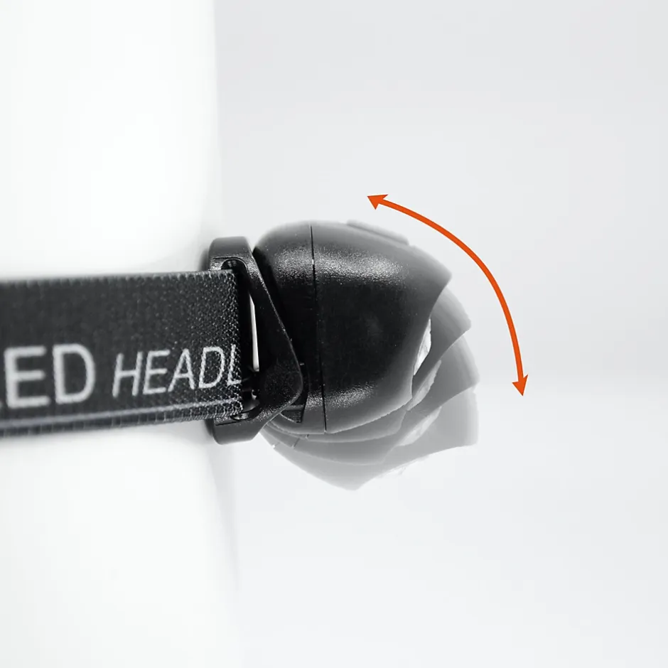 - Bien positionnée sur votre front, la lampe s’incline pour orienter la lumière selon vos besoins. En plus, vous disposez de quatre intensités d’éclairage
