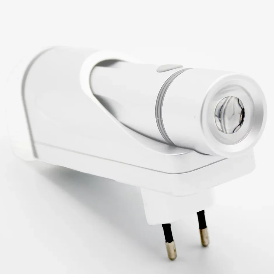 ? – PRATIQUE – Très utile pour éclairer les déplacements des personnes âgées, des enfants ou des animaux, signaler des escaliers ou un passage dangereux à des personnes malvoyantes. Posée sur son socle, la lampe torche détecte votre présence grâce à un senseur qui déclenchera son allumage.? – AUTONOME – Equipée d’un détecteur de mouvement et d’obscurité, la veilleuse s’allume automatiquement avec une douce lumière chaude dès que vous vous approchez à 2-3 mètres, ce qui vous procure un éclairage non agressif le temps de votre passage. La lumière est assurée par des LED SMD avec une lampe de 10 lm en lumière chaude et une torche de 50 lm en lumière blanche.? – MULTIFONCTION – La lampe led rechargeable peut être utilisée en tant que lampe à détection de mouvement et sert également de lampe de poche. Un bouton vous permet de l’éteindre, la rallumer ou même déclencher un signal SOS en cas de besoin.? – RECHARGEABLE – La base de la veilleuse accueille une torche qui se recharge par induction. Elle se recharge sur son socle dans une prise murale standard. Dès que vous retirez la torche de la base, elle s’allume automatiquement. Une fois rechargée, la torche dispose d’une autonomie d’environ 5 heures.? – CARACTÉRISTIQUES – Dimensions : 10 x 16,5 x 4,8 cm (torche de 12 cm), Alimentation de 3,6 V, 300 mAh NI-MH batterie et prise 220-240 V, 1,6 W. Le produit est certifié CE et ROHS.