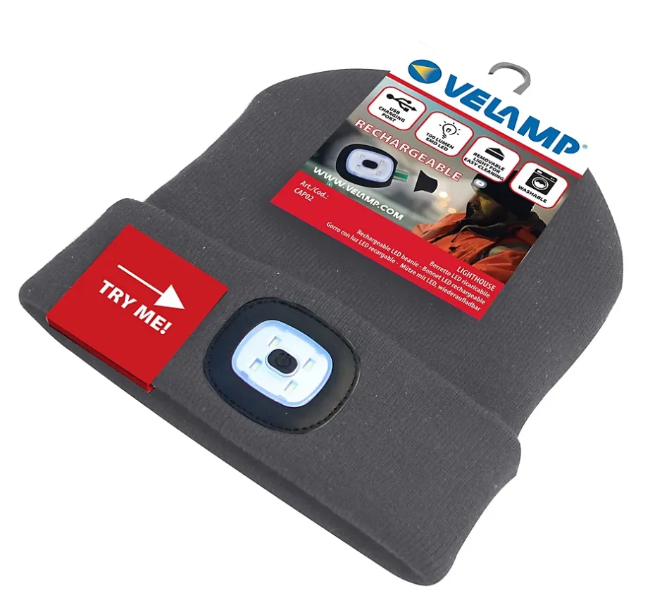 Ce bonnet avec lumière frontale comporte 4 LED ; éclaire jusqu’à 20 mètres de distance ; la lumière LED est amovible pour le lavage et la charge. 3 niveaux de luminosité : 100 % (10 heures de lumière environ), 50 % (15 heures de lumière environ), 25 % (20 heures de lumière environ). Batterie Li-ion 250 mAh. La lumière frontale est munie d’une prise USB : vous pouvez la recharger facilement dans votre PC, chargeur de téléphone, le port USB de la voiture. Ce bonnet LED est très léger et parfait pour les activités de plein air telles que la promenade du chien, la course, la chasse, le camping, les voyages. Il reste chaud et vous protège pendant la saison froide. La lumière LED est facilement amovible pour vous permettre de le laver dans la machine à laver. 100 % acrylique, unisexe.