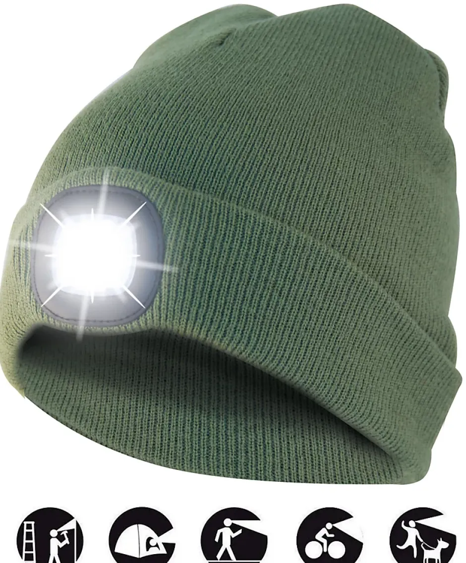Ce bonnet avec lumière frontale comporte 4 LED ; éclaire jusqu’à 20 mètres de distance ; la lumière LED est amovible pour le lavage et la charge. 3 niveaux de luminosité : 100 % (10 heures de lumière environ), 50 % (15 heures de lumière environ), 25 % (20 heures de lumière environ). Batterie Li-ion 250 mAh. La lumière frontale est munie d’une prise USB : vous pouvez la recharger facilement dans votre PC, chargeur de téléphone, le port USB de la voiture. Ce bonnet LED est très léger et parfait pour les activités de plein air telles que la promenade du chien, la course, la chasse, le camping, les voyages. Il reste chaud et vous protège pendant la saison froide. La lumière LED est facilement amovible pour vous permettre de le laver dans la machine à laver. 100 % acrylique, unisexe.