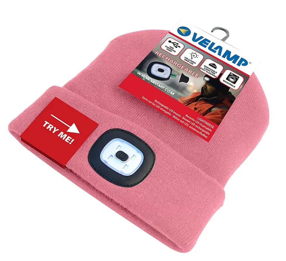 LIGHTHOUSE: Bonnet avec lampe frontale LED rechargeable. Rose-Velamp Clearance