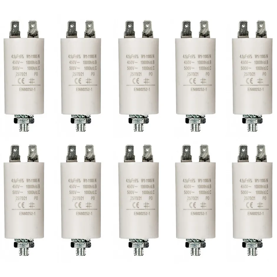 LOT 10 X CONDENSATEUR 4.5UF / 450 V + COSSES CONDO 4,5MF DESCRIPTION PRODUIT• Capacity:4.5 uF • Voltage:450 V • Dimensions:Ø 30 x 57 mm