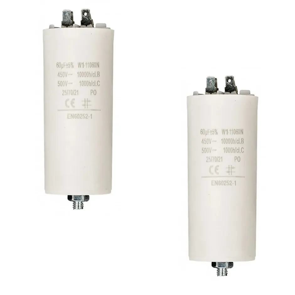 Lot de 2 CondensateursCondensateurs ronds dans un boîtier ignifuge. Isolés et hautement étanches à l’eau.Facile à monter grâce aux connecteurs mâles et la vis M8. Convient pour lampes 50/60Hz et moteurs.Capacity: 60.0 uFVoltage: 450 VDimensions: Ø 50 x 116 mmCapacité 60 µFTension 450 VType MoteurTerre OuiConnexion AMP femellesCondensateur 60µf, 60mf, 60 microfarads 450V COSSES pour moteur électriquePeut remplacer tout condensateur permanent de 60 µF dont la tension plaquée est comprise entre 400V et 500V, dont (entre autres)ITALFARAD séries RP2.60 et RP3.60DUCATI série 4-16-10 et 4-16-17ARCOTRONICS séries 1.27-4ACMKP 1.27-6CCMKP 1.27-7LAMKP COMAR Condensatori type MKA60-450 – 60µF – 450V – Sortie cosses