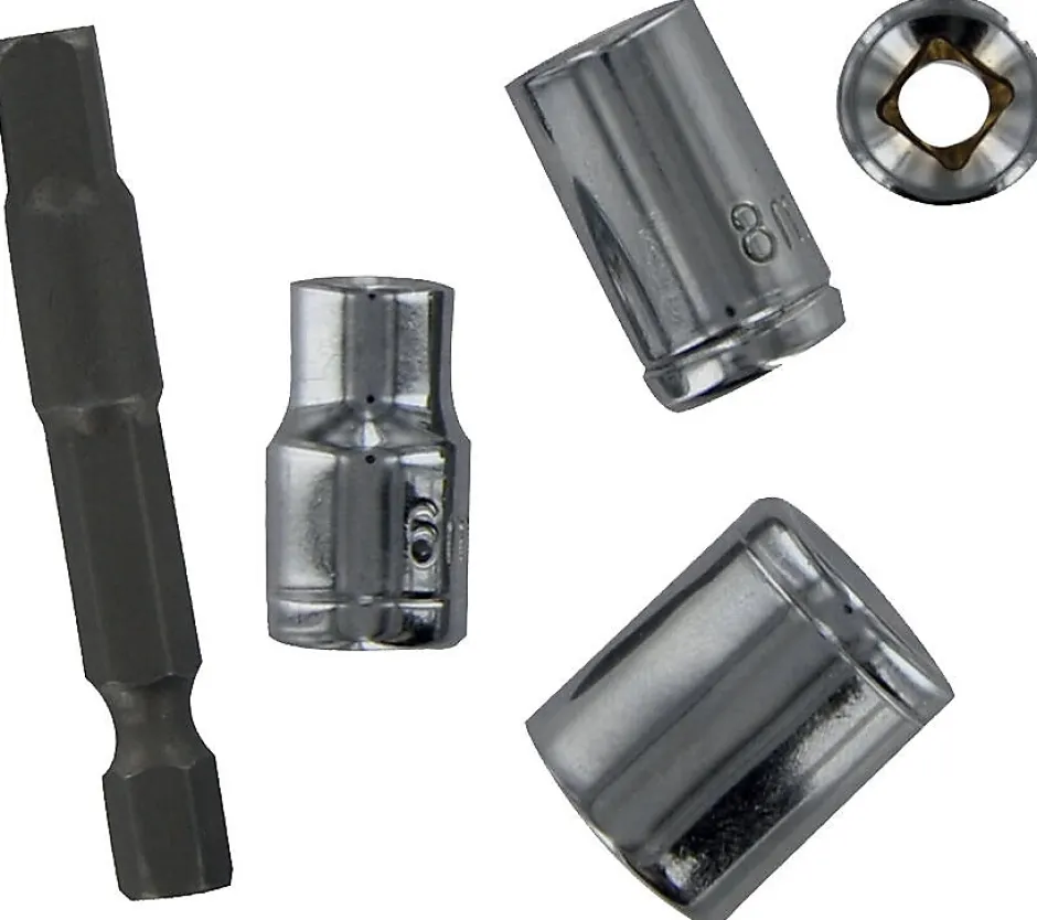 - Jeu de 4 douilles aux diamètres courants 6, 8, 10 et 13 mm.