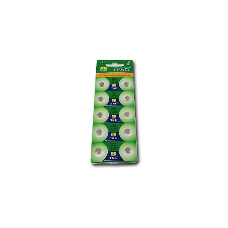 10 piles bouton 626APour utilisation régulière a été développée pour fournir une source d’alimentation économique et fiable pour des applications au débit faible. Son utilisation est conseillée pour une montre, calculatrice, pendule, jouet…Vendu sous pochette blister de 10 piles. Descriptif technique Voltage :1.5VEquivalences :1176SO, 177, 280-39, 280-72, 376, 377, 377A, 377BP, 43, 565, 606, 619, 626A, AG4, BA, CX626, CX66W, D 377, D377, G4, G4A, G4A177, GP376, GP377, L626, L626H, LR626, LR66, MA, R 377/37, RW 329, S32, S626S, SB-AWChimie: Zinc Carbone, ne contient pas de mercureForme :BoutonType : AlcalineMatière: métalTaille unitaire: H 2,6 x D 6,8mmPoids unitaire: 0.16 g