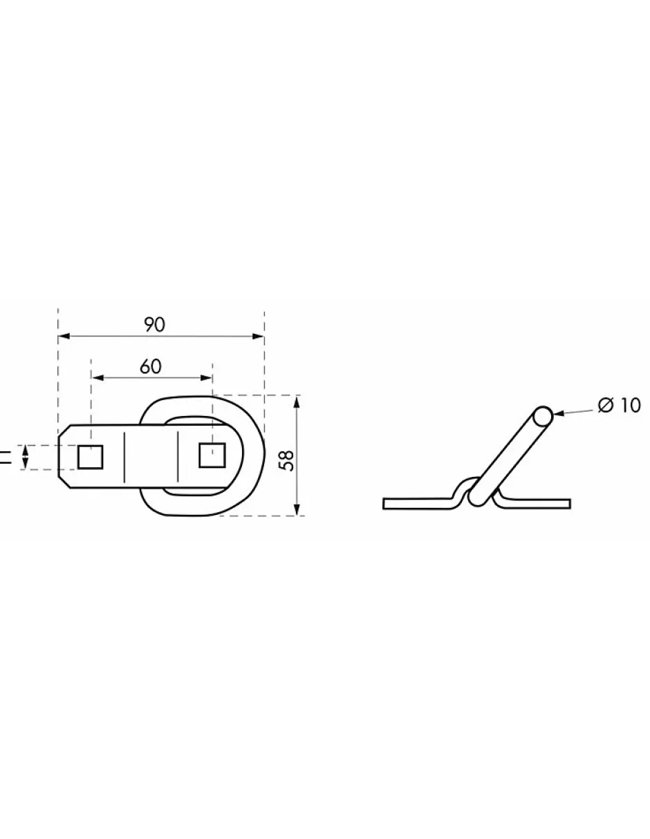 Platine et anneau acier zingué. Charge de rupture : 2270kg.