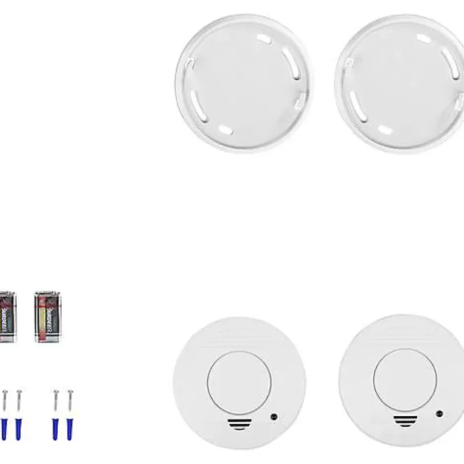 Pack de 2 détecteurs de fumée Smartwares RM250, capteur optique durable 10 ans, pile remplaçable fournie avec 1 an d’autonomie, alarme 85 dB, touche silence et test, certificat TÜV, avertissement de batterie faible.