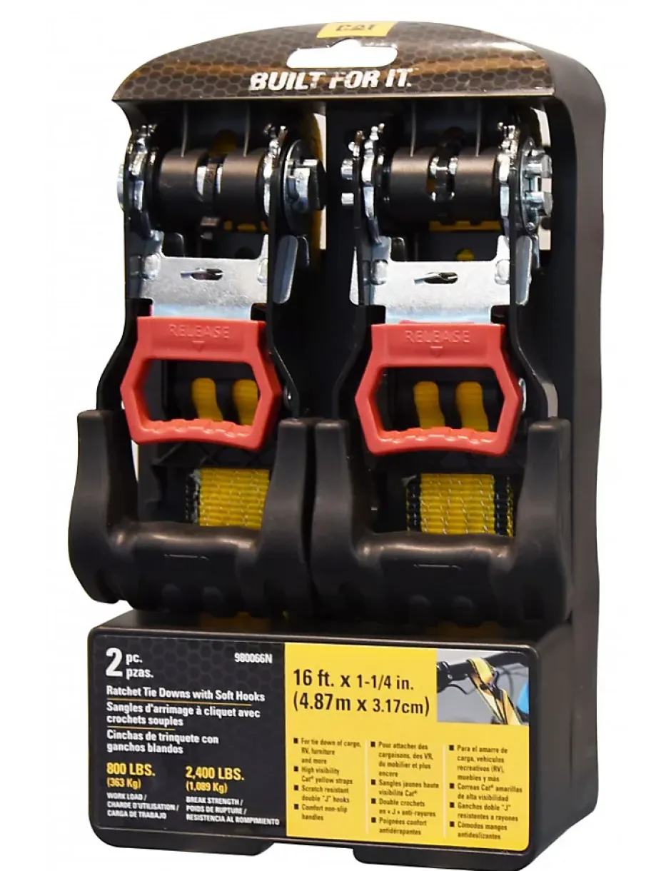 LOT DE 2 SANGLES D’ARRIMAGE A CLIQUET CATERPILLAR AVEC CROCHETSLONGUEUR : 4.87 MLARGEUR : 3.17 CMCHARGE D’UTILISATION : 363 KGSPOIDS DE RUPTURE : 1089 KGSIDEAL POUR ATTACHER LES CARGAISSONS, DU MOBILIER ….SANGLE JAUNE HAUTE VISIBILITEDOUBLE CROCHET EN « J » ANTI RAYURESPOIGNEE CONFORT ANTIDERAPANTE